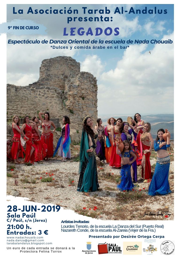 El próximo Viernes,28 de junio a las 21:00 h., la Asociación Tarab Al-Andalus presentará en la Sala Paul: «Legados«, noveno espectáculo de final de curso dirigido por la libanesa Nada Chouaib, y presentado por Desiré Ortega Cerpa